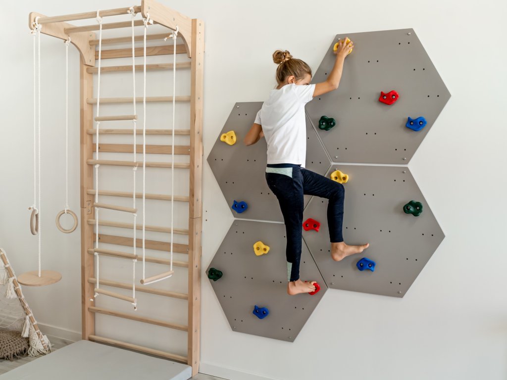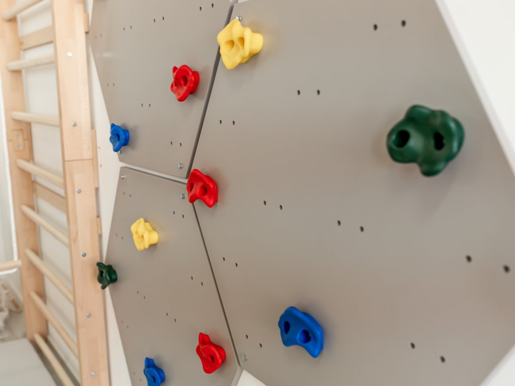 Miesto na zábavu, posilňovanie svalov a rozvoj hrubej motoriky vytvoria lezecké steny. Prekonanie náročných výziev pri lezení zároveň podporuje sebavedomie. Lezecká stena v detskej izbe sa iste stane vyhľadávaným miestom, ktoré si obľúbia nielen vaše deti, ale aj ich kamaráti. Pri hre si môžu vybrať rôzne varianty trás, náročnosť šplhania sa dá prispôsobiť veku a zručnostiam detí vhodným rozmiestnením úchytov. Na ochranu pri páde postačí pridať žinenku.